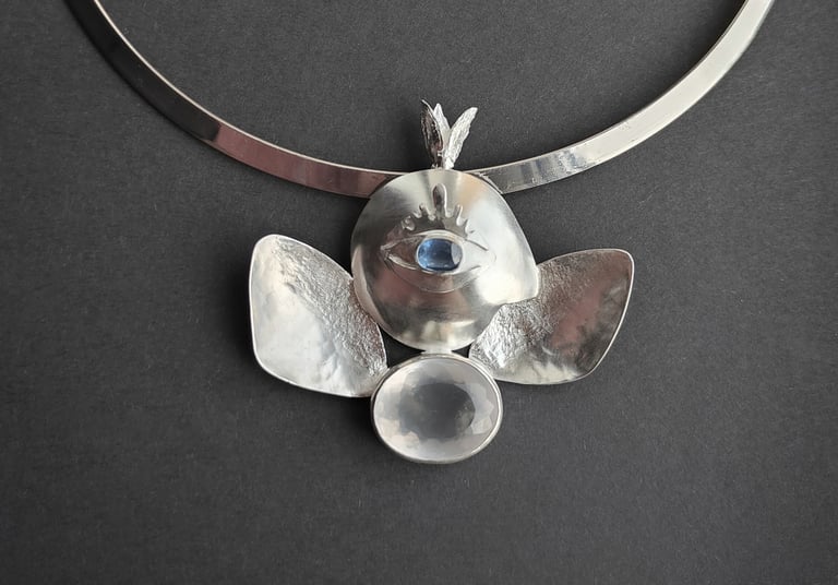 Kūryboje naudoju natūralius akmenis, emalę ir tauriuosius metalus. Kiekvienas papuošalas – tai unikali istorija, gimstanti tarp idėjos ir rankų darbo.